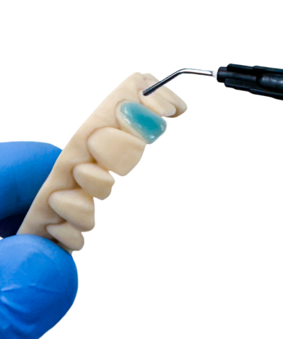 It works perfectly for modeling spaces in whitening trays, blocking undercuts and other detailed laboratory cases. Thanks to its perfectly balanced flow and thixotropic behavior, the gel stays exactly where it’s applied — it doesn’t flow or spread, giving full control over the thickness and shape of the layer. Its transparent blue color ensures excellent visibility during application. High temperature resistance provides stability not only during acrylic polymerization and thermoforming, but also during the injection of thermoplastic materials.